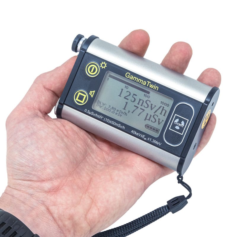 Kompaktes elektronisches Dosisleistungsmessgerät mit einem „Twin-Display“, das gleichzeitig Dosisleistung und Dosis anzeigt. Das Dosisleistungsmessgerät GRAETZ GammaTwin verfügt über eine Anschlussmöglichkeit einer Impulssonde.