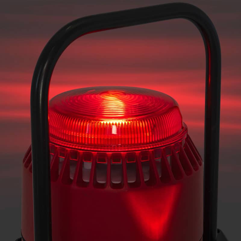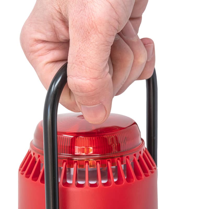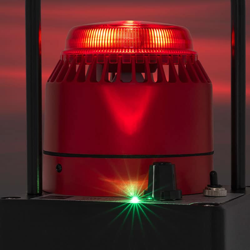 Optischer Alarm (rotes Blitzlicht) und sehr lauter akustischer Alarmton